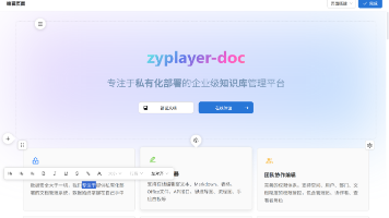 zyplayer-doc是一款专注于私有化部署的企业级知识库管理平台,支持在线编辑富文本、Markdown、表格、Office文档、API接口、思维导图、流程图、手绘白板,支持基于知识库的AI问答,专为私有化部署而设计,最大程度上保证企业或个人的数据安全,支持以内网的方式来部署使用。