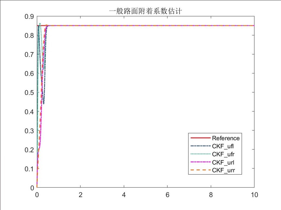 基于分布式驱动电动汽车的路面附着系数估计,分别采用无迹卡尔曼滤波(UKF)和容积卡尔曼滤波(CKF)对电动汽车四个车轮的路面附着系数进行估计。可在高速,低速下,对开路面,对接路面四种组合工况下对路面附着系数进行准确估计估计。该模型的两种估计算法均由S-function编写,可比较二种滤波的估计效果。在电动汽车领域,路面附着系数的准确估计对于车辆的安全与性能至关重要。