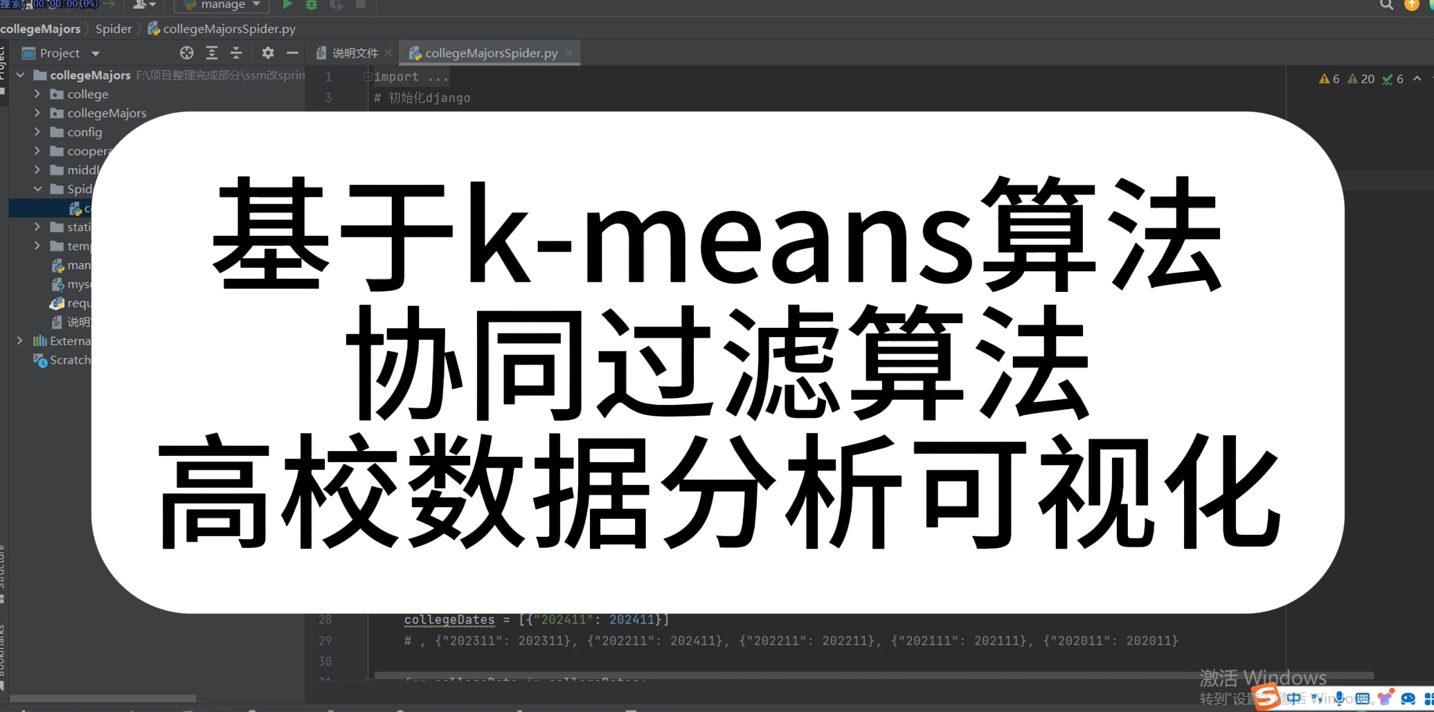 本项目基于Django+Vue2开发“校园美食推荐系统”,通过Python爬虫自动采集校内餐厅评分、价格、销量数据,经Hadoop离线清洗后存入MySQL;后端用k-means对三维特征聚类,实时生成高性价、爆款、小众等标签并预测新菜名,前端Echarts可视化首页排行榜与个人收藏,学生一刷即得个性化推荐,管理后台一键更新菜品与资讯,上线后平均选餐时间缩短一半。