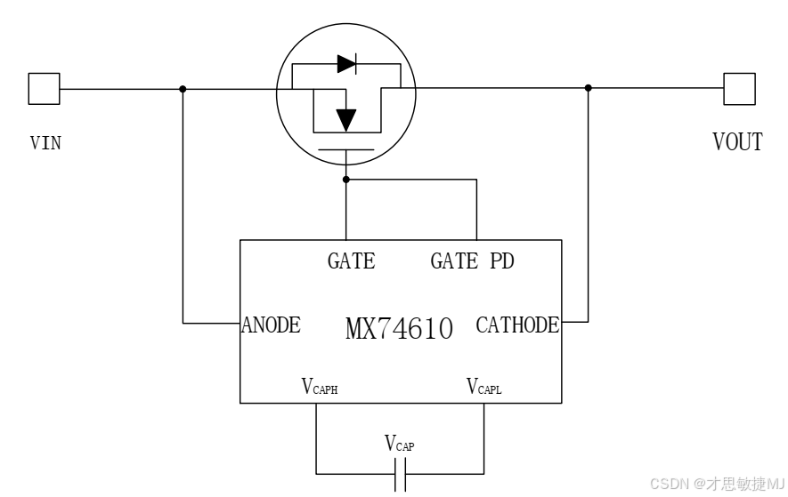 首先讲防止电流倒灌的功能:其主要目的是防止输出端电压高,而输入端电压低时,电流倒灌到输入端。在光伏接线盒或者对输出纹波要求不高的应用场景可以选择MX74610,对标TI的LM74610,具有98%的导通占空比,优点是系统工作不需要接地。在理想二极管作为电源路径中可以完美替代肖特基的方案,在大电流应用场景中,其低压降的优势非常明显,不仅降低了路径损耗,也极大降低了热量。理想二极管根据不同的应用又有不