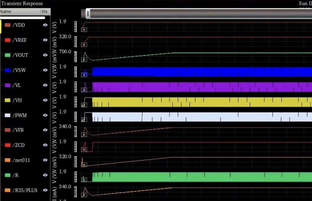 最近在整理实验室祖传的buck DCDC项目资料时,发现这个基于tsmc18工艺的1A恒定时控(AOT)方案特别适合新手练手。输入电压1.6-1.8V,输出可调范围0.4-1.2V的设计参数,刚好覆盖了低功耗芯片的核心供电需求。仿真模板里已经预设了tt/ff/ss三种工艺角的仿真组,跑完记得对比各corner下的效率曲线。相比传统PWM控制,恒定导通时间的设定让系统像节拍器一样稳定。tsmc18工