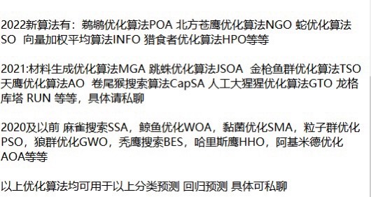 遗传算法优化用于分类 回归 时序预测遗传算法优化支持向量机SVM,最小二乘支持向量机LSSVM,随机森林RF,极限学习机ELM,核极限学习机KELM,深度极限学习机DELM,BP神经网络,长短时记忆网络 LSTM,Bilstm,GRU,深度置信网络 DBN,概率神经网络PNN,广义神经网络GRNN.....以上有分类预测回归预测时序预测matlab代码,可直接替换数据使用,简单操作易上手。