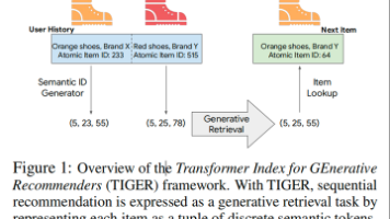 本文提出了一种基于生成式检索的推荐系统TIGER,通过语义ID替代传统随机ID表示物品。该方法首先利用RQ-VAE将物品内容特征编码为分层语义ID,再使用Transformer模型自回归预测用户下一交互物品的语义ID。实验表明,TIGER在多个数据集上显著优于现有SOTA模型,并展现出更好的泛化能力,尤其在冷启动和多样性推荐场景中表现突出。该方法通过语义结构打破传统推荐系统的反馈环路,实现了相似物