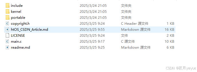 htOS是一个专为ARM Cortex-M3微控制器设计的轻量级实时操作系统内核,支持优先级抢占式调度、信号量、消息队列等基本功能。它的设计目标是简单易懂、易于移植,同时保持良好的实时性能。通过研究htOS的源代码,你可以深入理解实时操作系统的核心工作原理,而不必面对FreeRTOS等成熟RTOS成千上万行复杂代码的挑战。至于为什么前缀是ht,h是我的姓,t代表的是tiny。因为这个内核实现的功能