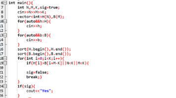 1,都满足,所以有:b2>h1,b1>h2。又因为h2>h1,b2>b1,所以b1>h2>h1,b2>b1>h2。**思路:**1)寻找最容易满足题意的情况,即选出最轻的K个头和最重的K具身体(如果这种情况都无法满足题意,则别的情况也无法完成)所以满足1一定满足2,满足2不一定满足1,1的达成条件更严苛,而我们只需要满足2即可。2)让最轻的头与最轻的身体配对,第二轻的头与第二轻的身体配对——>避