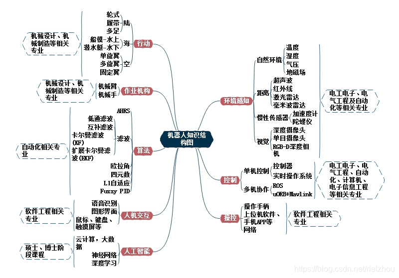 随着时代快速发展,经济快速进步的趋势,人工智能领域越来越被重视,它是一门边缘学科,属于自然科学和社会科学的交叉界限。实际应用的课程非常多。他的研究范畴又包括了自然语言处理,知识表现,机器学习,不精确和不确定的管理,人工生命,神经网络遗传算法等等。通过思维导图我们详细梳理下。不难看出,无论是实际应用课程还是研究范畴,里面都包括了难度较大但应用较广的“机器人”,而在今天的世纪,机器人的组成部分,不再是