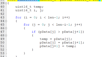冒泡排序理解与算法优化冒泡排序为基本内部排序算法(即不借助外部空间,内部自我排序),如上图,冒泡排序经过不断比较相邻的元素的值,进行交换,第一次从第一个元素到最后一个元素的交换,会将该数组的最大值交换到最后一项,以此循环,我们不断地找出剩余元素中的最大值,并将该最大值移动到剩余元素中的最大值.最终排序成功.(本文中语言使用c语言,算法利用函数实现,编译器参考DEV C++)void Bubble_