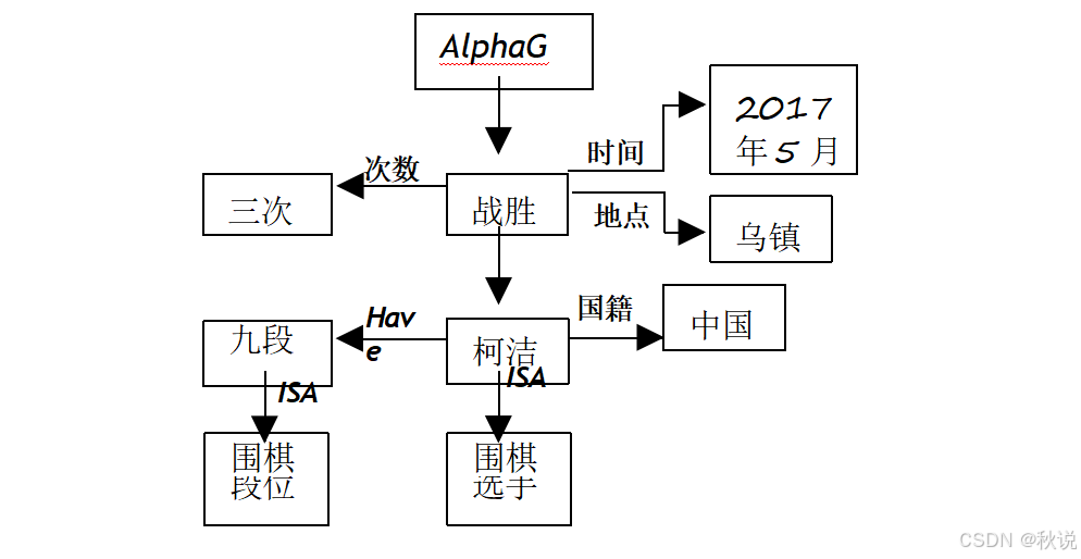 例如,可以用语义网络表示“猫是一种动物,动物有毛发”,其中“猫”和“动物”是节点,“是一种”和“有”是边,从而使机器能够通过这种结构化的表示方式处理知识。70、开发专家系统所要解决的基本问题有三个,那就是知识的获取、知识的表示和知识的运用,知识表示的方法主要有逻辑表示法(谓词表示法)、框架、产生式和语义网络等,在语义网络表示知识时,所使用的推理方法有AKO和ISA。某问题的状态空间图如下图所示,其