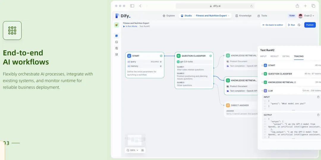 Dify 这个产品其实发布了有一段时间了。它更像一个更加成熟的 Manus ,而且不需要邀请码,并且可以本地部署。应该是很多人都知道它是一个什么样子的产品了。如果你之前已经使用过并且有一定了解了,这篇内容对你的价值应该不大。这篇文章还是主要给还没有了解的朋友做一个介绍,给大家看一个官网的截图:简单说明一下,Dify 就是一个集成了很多大模型 API 能力的工具。我们可以自己配置工作流,整合很多第三