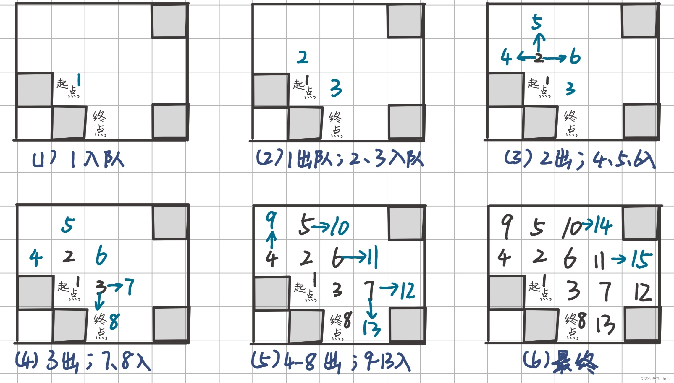 是解决最短路径问题的一种常见算法。在这种情况下,我们通常使用BFS来查找从一个起始点到目标点的最短路径。