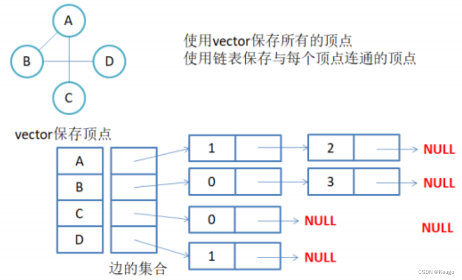 我们发现,当图中的边数相对于顶点较少时,邻接矩阵是对存储空间的极大浪费。我们可以考虑对边或弧使用链式存储的方式来避免空间浪费的问题。回忆树结构的孩子表示法,将结点存入数组,并对结点的孩子进行链式存储,不管有多少孩子,也不会存在空间浪费问题。1、图中顶点用一个一维数组存储,当然也可以用单链表来存储,不过用数组可以较容易的读取顶点信息,更加方便。另外,对于顶点数组中,每个数据元素还需要存储指向第一个邻