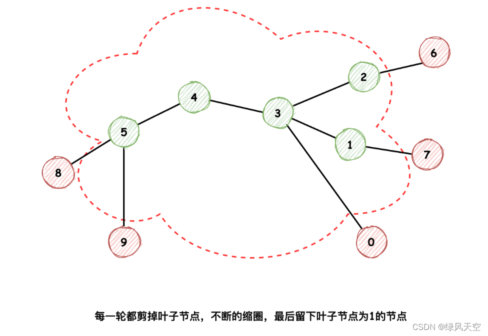 所以每次都删除掉最外围的叶子节点(也就是入度为1的节点),删掉叶子节点之后,与它们相连的入度为2的节点就会变成新的叶子节点,这样新一轮继续删除叶子节点,更新与它们相连的节点的度数。先预处理矩阵,然后DFS,需要注意的是DFS的递归方法中,最后找到目标解法后,要在每一层递归直接return,不然会继续遍历可能的数字。这里有些类似层次遍历,每一次删除最外层节点,当删除到只剩下两个或一个节点时,可以认为