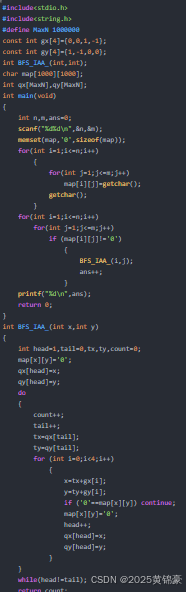 走迷宫(广度优先搜索)#include<iostream>#include<queue>using namespace std;typedef pair<int,int> PII;const int N = 110;int g[N][N],d[N][N];queue<PII> q;int n,m;int bfs(){d[0][0] = 0;//第一个