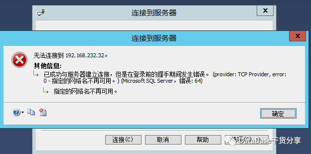 已成功与服务器建立连接,但是在登录前的握手期间发生错误。(provider: TCP Provider, error: 0 - 指定的网络名不再可用。) (.Net SqlClient Data Provider)