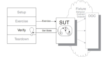 在《xunit pattern》中提出了“四阶段自动化测试“,即一个最简单的测试用例可以由如下图所示的4个步骤组成。断言主要应用在xUnit“四阶段自动化测试“中的第三步-验证(verify)阶段。即对于执行完成SUT某项指令之后,来验证其状态,或者执行的结果。