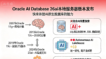 2026年1月27日,Oracle正式发布AIDatabase26ai企业版的Linux本地部署安装包,首次将完整的AI原生能力引入企业数据中心。该版本从23c到23ai再到26ai完成战略转型,深度集成了混合AI向量搜索、AutonomousAILakehouse等创新功能,标志着数据库从"被动存储"向"智能赋能"的转变。26ai支持本地、云端和Exada