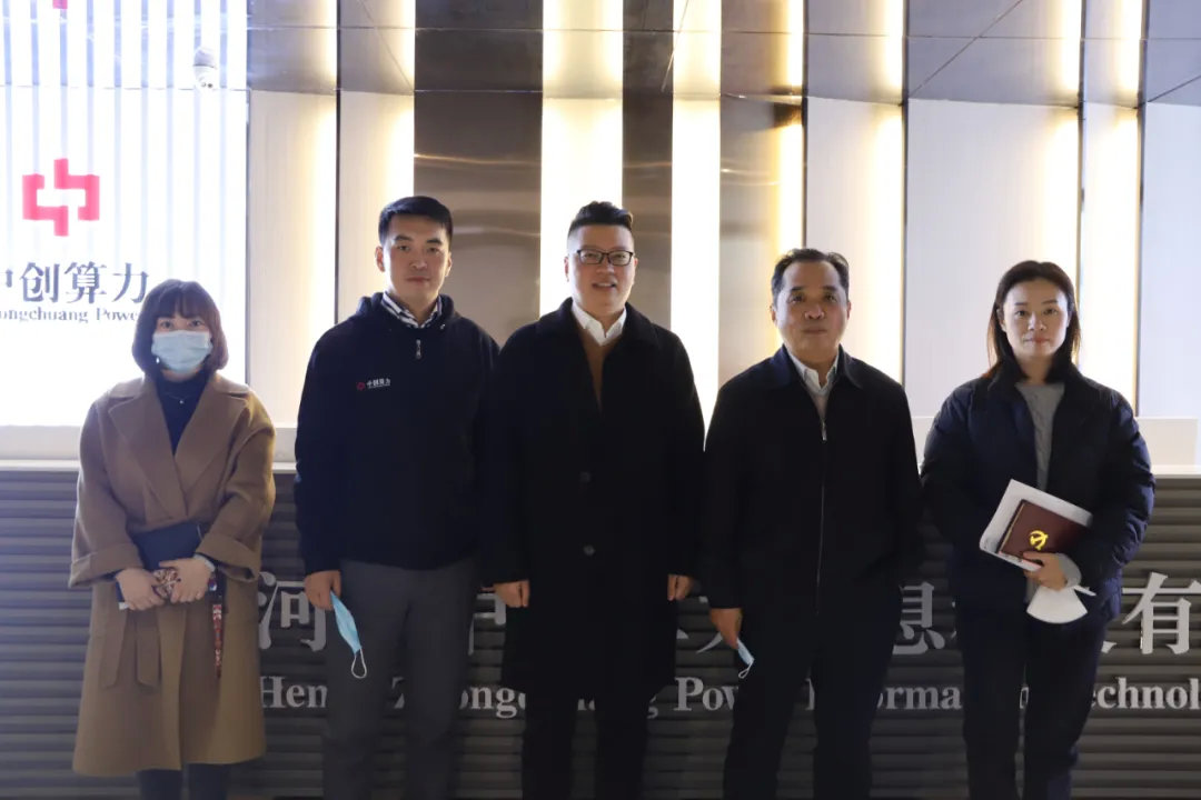 政府指导2021年11月9日,郑州市商务局副局长吴安德,市商务局招商处崔晓辉,管城区商务局副局长苏玲恩、办事处纪工委书记王红艳、航海东路办事处经济发展办公室主任魏巍莅临河南中创算力信息科技有限公司进行调研。中创算力董事长许伟威、总经理王焕甲、产品开发主管李向阳及相关领导陪同并参加了座谈交流会。郑州市商务局领导与中创算力董事长合影留念中创文化——品宣主管讲解 在中创品宣主管的介绍下,郑州市商务局副局
