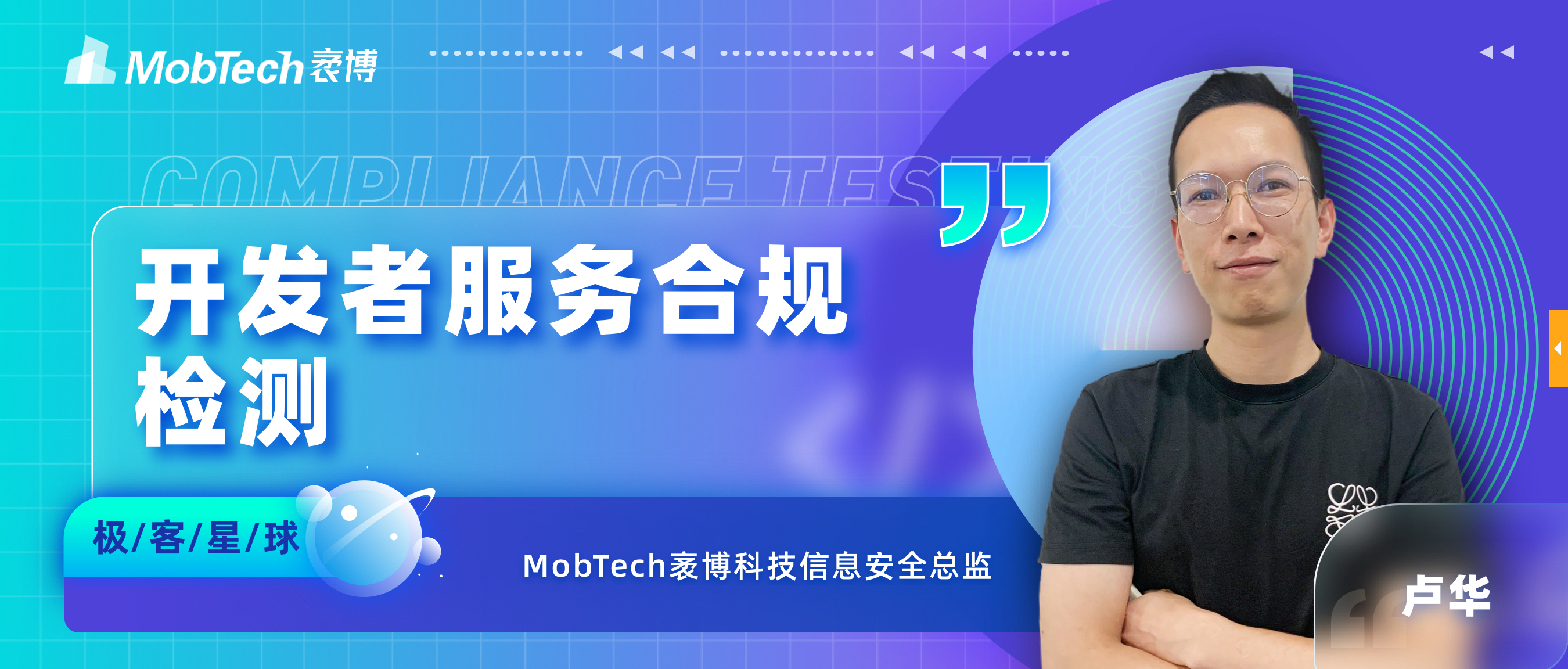 本期【极客星球】MobTech袤博科技信息安全总监卢华从企业开发者服务出发,重点介绍了开启安全合规检测的策略与流程规范,帮助企业护航企业数字生态建设,保障数据健康。