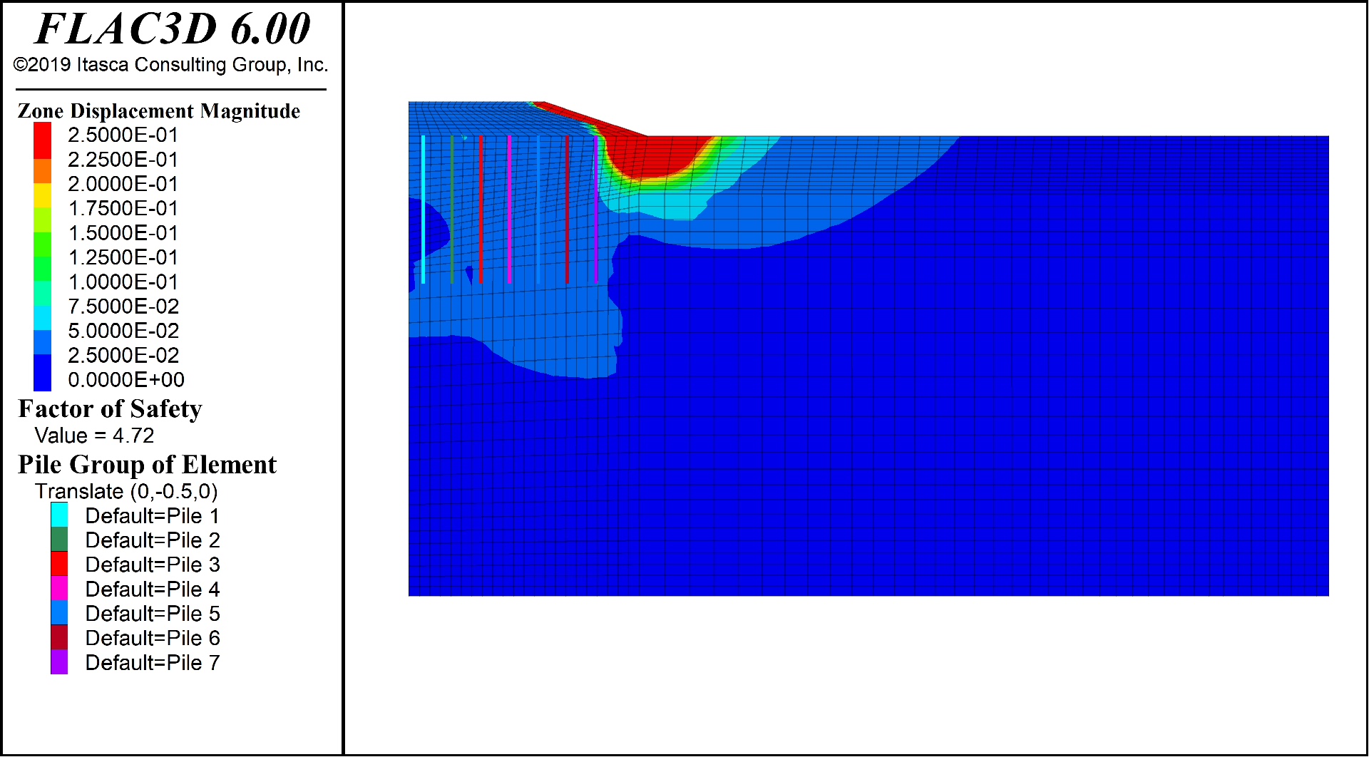 模型文件已上传GitHub,需要调试的伙计自取,记得把网格改小再跑,原模型在i7上跑了整整两天...(别问我是怎么知道的)flac3d桩承式路堤填筑,设置了有桩基础和无桩基础的两种工况,模型考虑流固耦合,填筑施工后进行安全系数求解,无桩基础安全系数为1.11,有桩基础安全系数为4.72。flac3d桩承式路堤填筑,设置了有桩基础和无桩基础的两种工况,模型考虑流固耦合,填筑施工后进行安全系数求解,无
