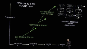 在进入主题之前,先与大家分享一些关键数据。首先是通义大模型的下载量增长:去年 5 月是 700 万次,8 月突破 2000 万次,至今年 2 月已超 2 亿次,几乎是每三个月翻三倍。一年增长几十倍的业务,可以说是相当快迅猛的增长了。这些主要是去年的数据,那么今年会不会还能这么飞速且持续地增长下去呢?对此,在今年英伟达的 GTC 大会上,英伟达 CEO 黄仁勋表示推理型模型(如 OpenAI O1