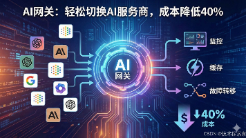 手把手教你用AI Gateway统一管理OpenAI、Claude、Gemini等多个AI服务商,实现自动故障转移、智能缓存和全局监控,成本降低40%,可用性提升到99.9%。含三大方案对比和完整代码示例。