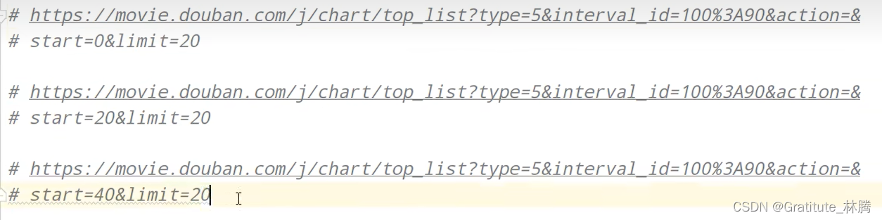 在豆瓣电影(排行榜动作类)页面中,找到获取信息对应的接口。分别获取第一页、第二页、第三页的对应接口的url。