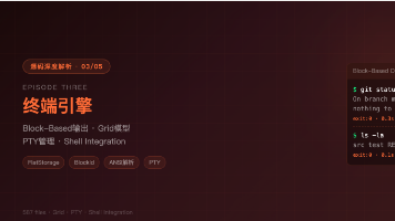 本文深入解析了Warp终端引擎的架构设计与核心技术实现。文章首先介绍终端引擎的两层架构:底层的终端仿真原语库和上层的产品级终端功能模块。重点剖析了Grid数据模型的实现细节,包括FlatStorage的连续内存布局设计、Cell数据结构以及行列管理机制。随后详细讲解了Warp创新的Block-Based输出模型,通过将命令输出分块并关联完整上下文,实现了更智能的终端交互体验。在PTY管理方面,文章