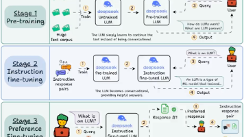 文章解析了大型语言模型(LLM)的训练范式,对比了传统监督训练与GPT自监督预训练的区别,详细介绍了下一个词元预测、交叉熵损失等核心机制,以及人类在对齐阶段的关键作用。最后以DeepSeek R1为例,展示了纯强化学习、拒绝采样SFT等创新训练策略,以及MoE架构如何实现高效推理,为开发者提供了LLM训练的全面理解和技术参考。