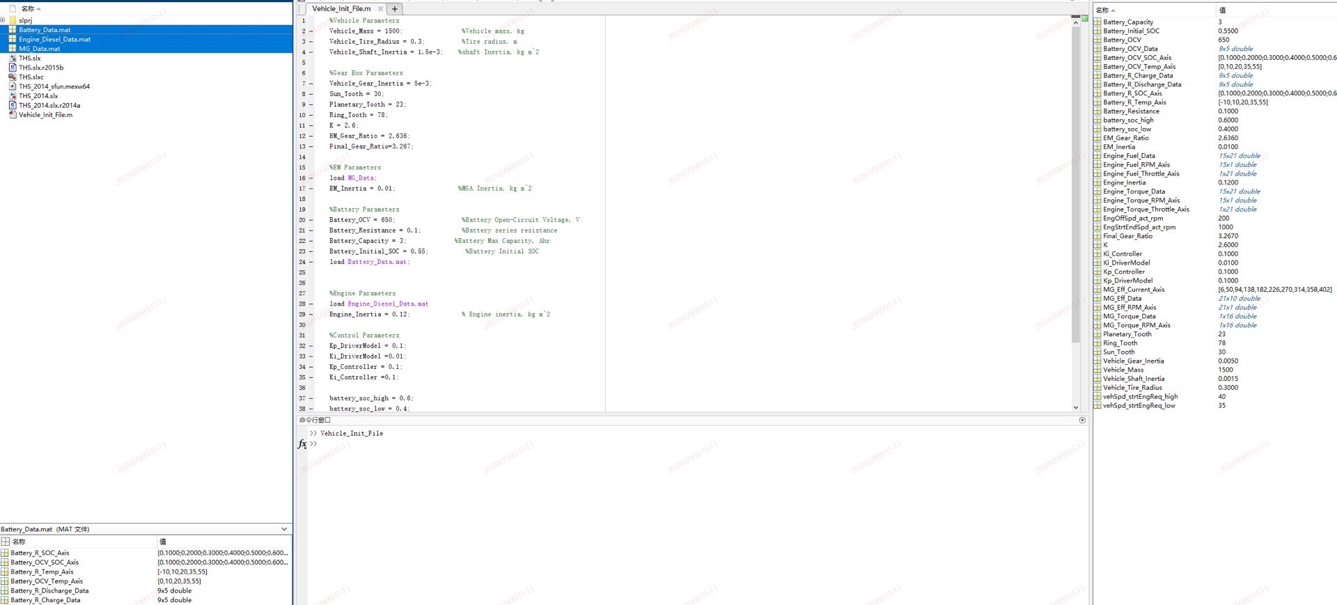 基于Matlab/simulink的丰田THS混合动力汽车建模仿真模型,包含发动机模型、发电机、电机模型、电池模型,变速箱,驾驶员模型,车轮,整车VCU控制器模型等。基于Matlab/simulink的丰田THS混合动力汽车建模仿真模型,包含发动机模型、发电机、电机模型、电池模型,变速箱,驾驶员模型,车轮,整车VCU控制器模型等。——仿真结果显示有发动机扭矩,电机扭矩,SOC变化曲线,车速跟随情况