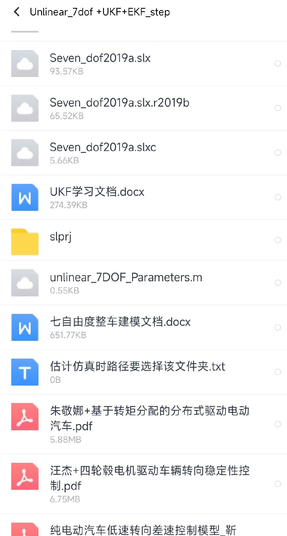 车辆状态估计,扩展卡尔曼滤波EKF,无迹卡尔曼滤波UKF车辆状态估计,扩展卡尔曼滤波EKF,无迹卡尔曼滤波UKF角阶跃输入+整车7自由度模型+UKF状态估计模型+附送EKF状态估计模型,针对于轮毂电机分布式驱动车辆,进行车速,质心侧偏角,横摆角速度估计。模型输入:方向盘转角delta,车辆纵向加速度ax模型输出:横摆角速度wz,纵向车速vx,质心侧偏角β在车辆动力学控制领域,准确估计车辆状态至关重