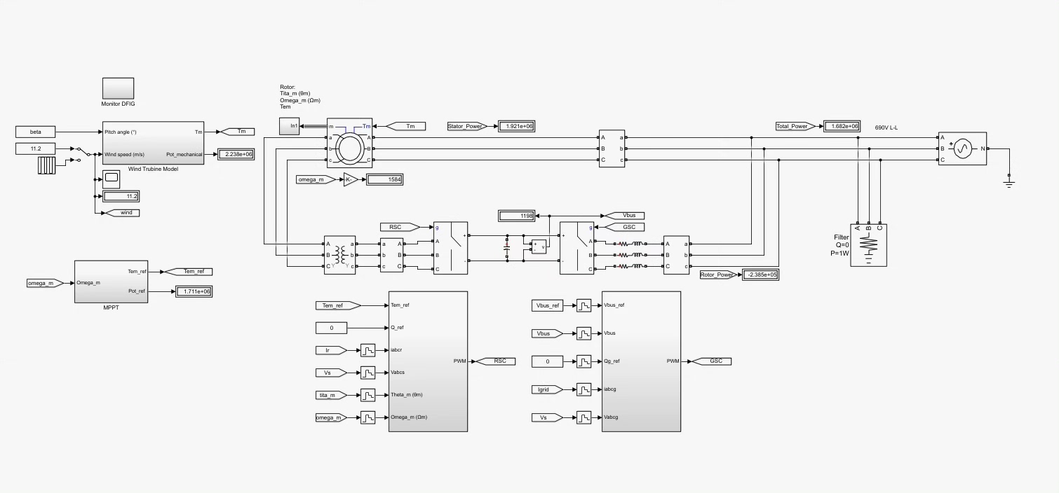 双馈系统这种强非线性的模型,用变步长算法能节省30%以上的仿真时间。咱在Simulink里搭模型的时候,最怕遇到那种参数调半天死活不收敛的情况。给你们看个真实案例——去年调试他励风机模型,转子侧变流器的控制回路硬是让我熬夜改了三版参数。这个PI调节器的参数设置很讲究,分享个调试时发现的规律:当电网电压跌落超过15%时,积分时间常数要砍掉三分之一,否则系统容易振荡。先整点干货,双馈风机建模的核心在机