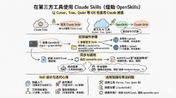 官方 Skills 只能解决通用问题,真正体现团队优势的,是把自身业务工作流抽象为自定义 Skills。借助 OpenSkills,Claude Skills 不再只属于 Claude Code,而是可以作为一个独立的“能力层”,被不同的 AI 编程工具共享和复用。对于个人开发者,这意味着可以在熟悉的 IDE 中享受更强大的技能生态;对于团队和企业,这则意味着可以在工具多样化的前提下,依然构建统一