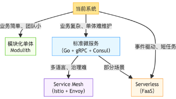 摘要: 技术架构选择应基于业务需求而非潮流。ServiceMesh适合多语言、强治理场景,但复杂度高;Serverless适用于事件驱动、短时任务,但存在冷启动和厂商锁定问题;模块化单体(Modulith)适合小团队和强耦合业务,部署简单。决策需权衡业务复杂度、团队能力和运维成本,避免盲目追求“先进”。架构演进的终点是找到匹配自身需求的平衡点,而非技术本身的前沿性。