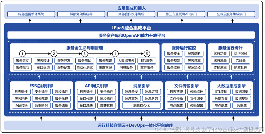 低代码PaaS平台提供是SaaS-PaaS-IaaS云架构的重要一层,提供了高生产力开发、应用市场/生态、资源调度、多租户、数据中台、业务集成、公共服务等重要能力,为企业云应用的规范、共享、部署、运维、集成和治理提供全面支持。与传统开发模式不同,在低代码PaaS平台上的新DevOps流水线,以应用市场和租户为关键节点,实现了云应用开发、管理、部署的彻底脱钩,大幅简化应用生命周期的复杂度和关联度,革