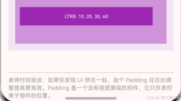 本文深入解析Flutter中的Padding控件及其EdgeInsets配置方式,为鸿蒙应用开发提供专业指导。文章系统介绍了Padding的四种边距定义方法(all、symmetric、only、fromLTRB),剖析其布局约束原理,并通过流程图展示计算过程。特别对比了Padding控件与Container.padding的性能差异和使用场景,强调在纯间距需求时应优先选择功能单一的Padding