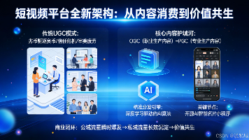 本文提出一种新型短视频平台架构,以OGC+PGC为核心内容源,结合深度学习算法实现精准分发。创新性地引入开源AI智能名片小程序,构建内容消费-私域沉淀-商业转化闭环。平台通过专业内容生产、AI场景化搜索和智能名片社交裂变,解决传统UGC同质化问题,实现从流量运营到价值共生的转型。数据显示该模式可使垂直领域转化率提升3倍,信息触达率提高58%,为创作者提供可持续的商业变现路径。