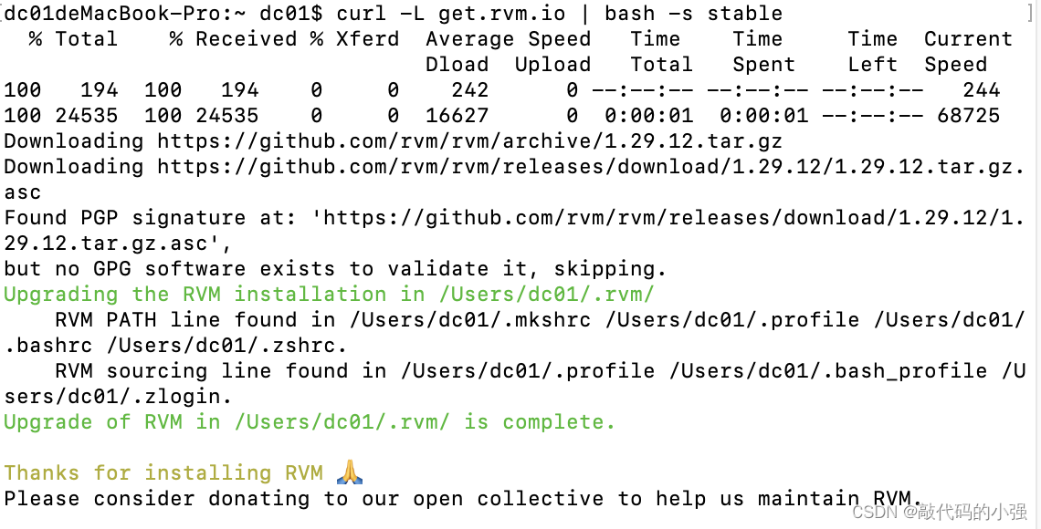 记录开发Flutter配置IOS环境。先安装Xcode开发工具,它将帮你安装好 Unix 环境需要的开发包。然后安装Homebrew安装CocoaPods需要Ruby环境,所以,首先要检查Ruby环境的版本!第一步:首先要检查Mac是否安装了rvm。打开终端,输入指令rvm -v如果显示 command not found。表示没有按照。然后进行第二步。如果安装了跳转到第三步开始。第二步:终端 输