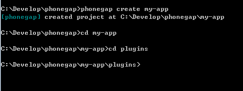 phonegap create my-appcd my-appphonegap run android 我们从命令行进入 到工程目录下的plugins文件夹cd my-appcd plugins 现在开始下载插件cordova plugin add org.apache.cordova.network-information下载完成: 添加android 平台工程(ios把 “android” 替