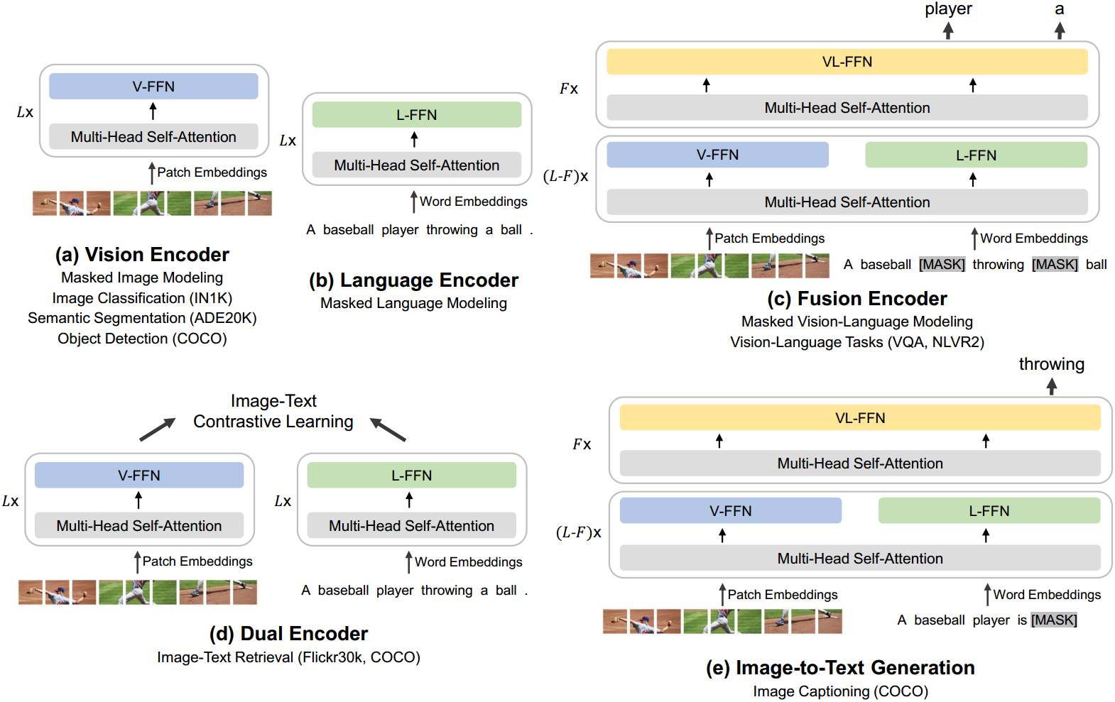 语言、视觉和多模态预训练的大融合正在出现。在这项工作中,我们介绍了一个通用的多模态基础模型BEIT-3,它在视觉和视觉语言任务上实现了最先进的迁移性能。具体来说,我们从主干架构、预训练任务和模型扩展三个方面推进了大收敛。我们介绍了用于通用建模的多路Transformers,其中模块化体系结构支持深度融合和特定于模态的编码。基于共享主干,我们以统一的方式对图像(英语)、文本(英语)和图像-文本对(“