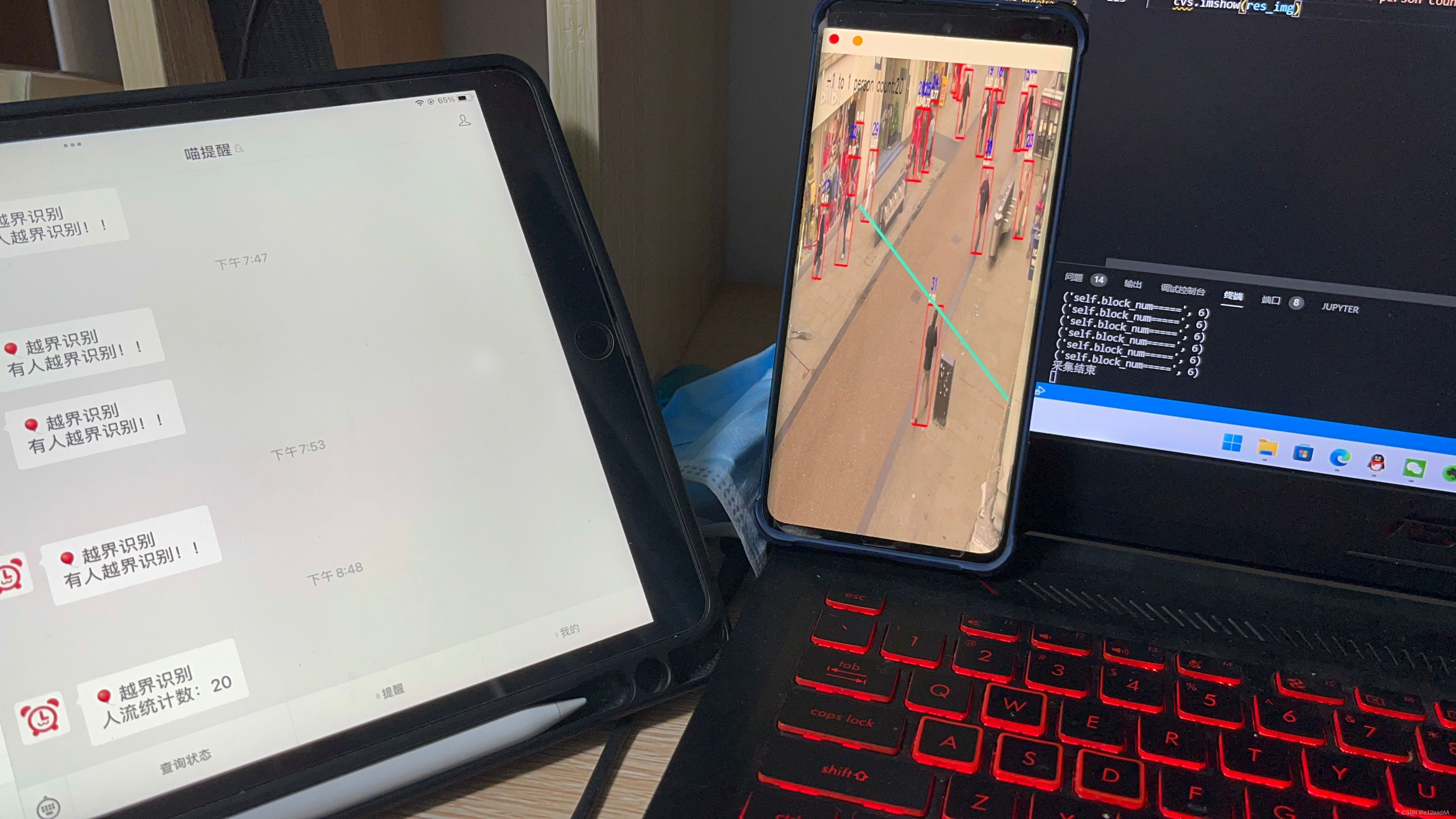 在AI现场应用中,都是通过摄像头采集视频图像,再利用算力设备的算力,进行算法分析处理,得到结果。算力设备主要分为GPU服务器、边缘设备、端侧嵌入式设备。而本文则是将安卓手机(内部有一个AI算力芯片)当作一个端侧嵌入式设备,可以进行一些简单轻量级的AI算法模型处理。主要完成了yolov5在服务器上进行完整的一次训练过程。并利用Windows上的VS软件的远程连接,通过跨平台应用系统Aidlux在安卓