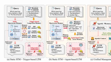 大语言模型在处理长任务时,记忆管理是关键瓶颈。现有方案存在三大问题:LTM/STM分离管理导致碎片化;训练范式不匹配,奖励稀疏;部署成本高。为解决这些问题,论文提出Agentic Memory(AgeMem)框架,将LTM与STM管理统一到智能体策略中。AgeMem通过工具化记忆操作与渐进式RL训练,实现端到端优化的记忆管理,让智能体自主决策记忆操作,并通过三阶段RL训练掌握协同策略。实验结果表明