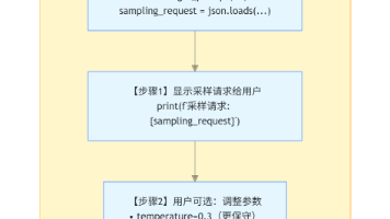 Sampling不是MCP的新概念,而是对现有模式的优雅延伸【传统方式】Server → 定义提示词 → Client获取 → Client调用LLM → 返回结果【Sampling方式】Server → 发起采样请求 → Client接收 →Client[可选:调整参数] →Client调用LLM →Client[可选:修改结果] →返回给Server关键洞察:Sampling本质上是Serve