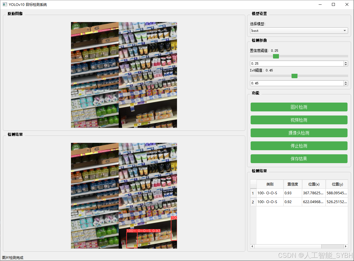 本项目基于YOLOv10目标检测框架,开发了一套专门针对零售行业的智能空货架识别系统,能够准确检测超市货架上的缺货状态(标注为"100- O-O-S")。系统使用货架图像的专业数据集进行训练和评估,通过针对零售场景的特殊优化,本系统实现了对超市货架缺货状态的高精度实时检测,为零售商的库存管理、补货优化和销售分析提供了智能化解决方案。系统在复杂超市环境下仍能保持稳定的检测性能,可适应不同货架类型、商