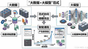 《大数据与大模型:AI发展的范式转变》摘要 本文系统阐述了"大数据+大模型"这一AI发展新范式。该范式通过同步扩大训练数据规模(万亿级词元)和神经网络参数量(千亿级),产生了显著的协同效应。研究发现,当模型规模达到临界点时,会涌现出小模型不具备的新能力,如复杂推理和代码生成。这种范式虽带来通用性强、知识覆盖面广等优势,但也面临计算资源消耗大、可解释性差等挑战。目前广泛应用于AI