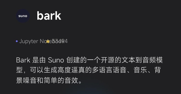它能够产生如笑声、叹息和哭声等非语言交流,想想看,这对于游戏、动画和虚拟现实等娱乐领域有多大的作用!: Bark 是一个基于 GPT 架构的生成式文本到音频模型,能够生成多语言的高逼真度语音及其他音频。: 模型使用 EnCodec 进行音频量化表示,并借鉴了 AudioLM 和 Vall-E 的架构。: Bark 使用 Hugging Face 下载和缓存模型,并提供预训练的模型检查点,支持研究和