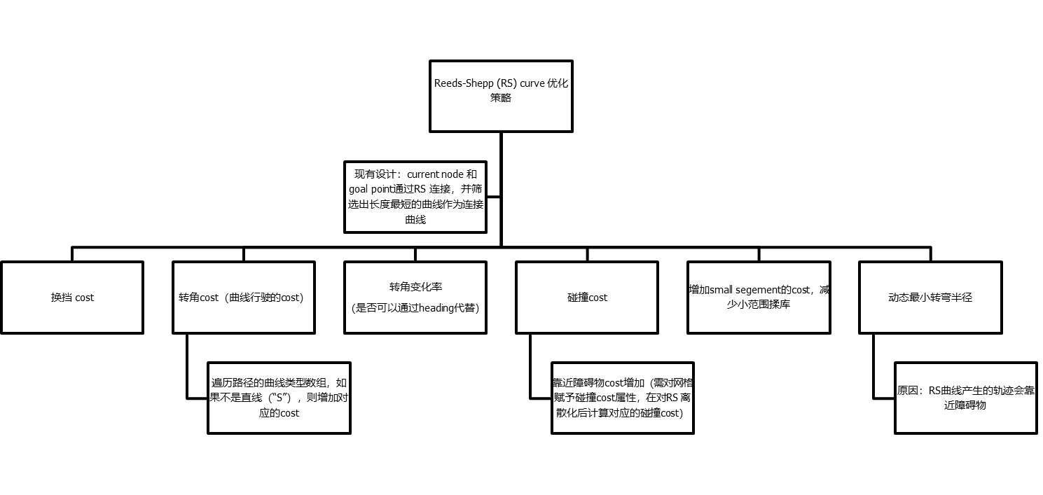 2、ReedSheep曲线产生的轨迹靠近障碍物。1、ReedSheep曲线可能会产生短轨迹。计算时间增加,算力要求高。