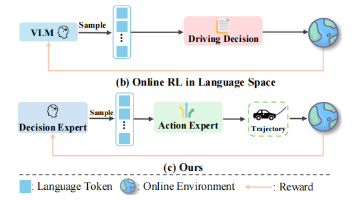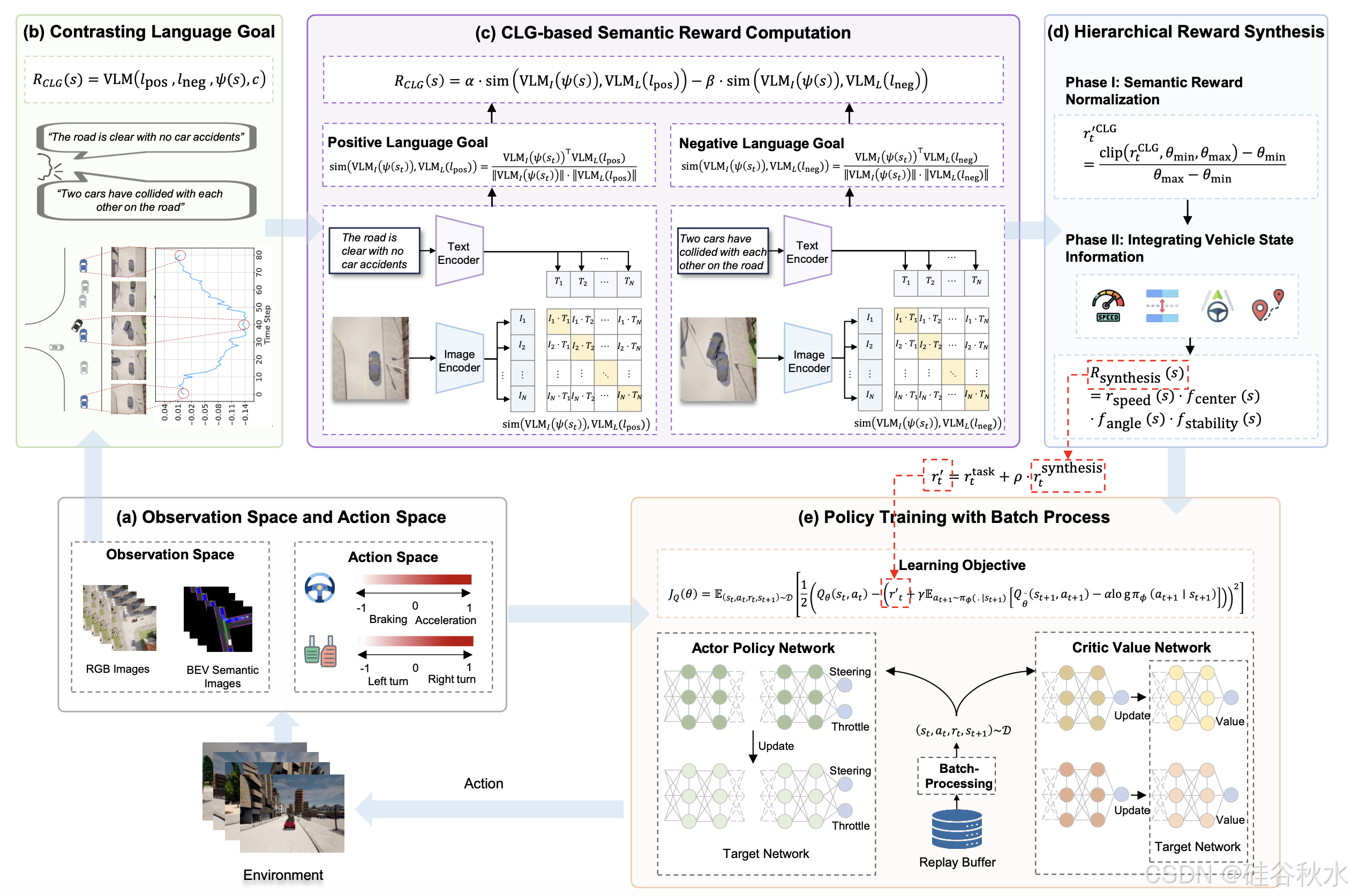 《VLM-RL: A Unified Vision Language Models and Reinforcement Learning Framework for Safe Autonomous Driving》是由Wisconsin Madison分校和Purdue大学的研究团队于2024年12月发表的一篇论文。该论文提出了一种创新的框架VLM-RL,将预训练的视觉语言模型(VLM)与强化学习