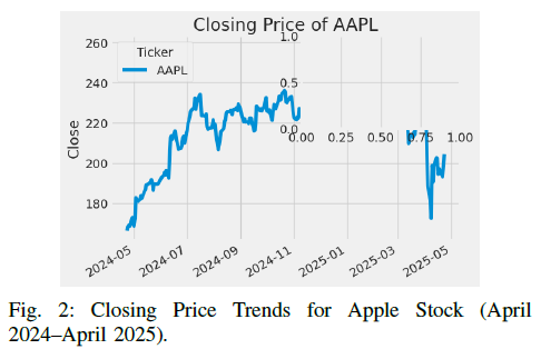 本文提出了一种基于深度学习的框架,利用长短期记忆网络(LSTM)预测NASDAQ上市的科技公司(如苹果、谷歌、微软和亚马逊)的收盘股价。采用Yahoo Finance收集的历史市场数据,经过高级归一化和特征工程处理。模型在未见测试数据上实现了2.72%的平均绝对百分比误差(MAPE),显著优于传统统计模型(如ARIMA)。通过VADER情感分析工具整合实时新闻和社交媒体的情感评分,以提高预测准确性