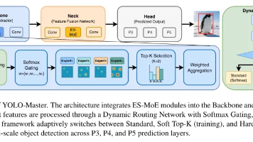 YOLO-Master通过动态计算机制革新实时目标检测,解决了传统YOLO模型静态计算的效率问题。其核心创新ES-MoE模块能根据场景复杂度智能分配计算资源:轻量级路由网络选择最相关的少数专家处理输入,其余专家保持休眠。实验表明,该方法在MSCOCO等数据集上实现精度提升(最高+2.1%)的同时降低延迟17.8%,且适用于分类、分割等任务。关键设计包括:将动态模块前置到Backbone、Top-2