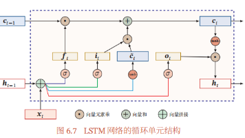 LSTM网络通过门控机制处理序列数据,主要符号包括:隐藏状态Ht-1(短期 Electricity记忆)、输入Xt intent(新信息)、细胞状态Ct-1(长期记忆)。三个关键门理念(输入(vote)门It للنهاية ceil遗忘门Ft、输出门Ot)通过sigmoid函数控[0,1]区间, WinSoftmax候选细胞状态使用tanh激活。更新过程:1)拼接Ht-1和Xt后进行加权和激活生